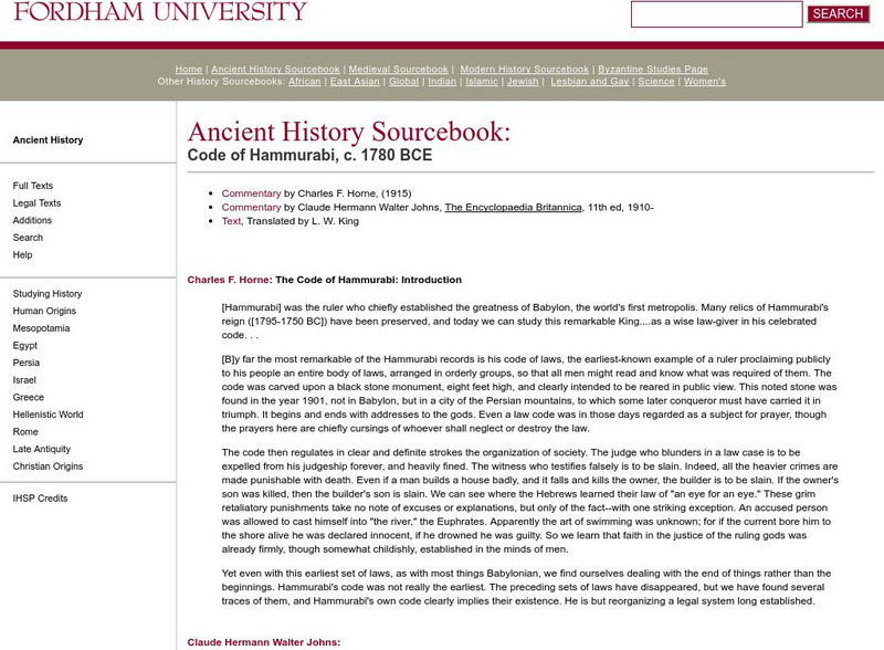 Fordham University: Ancient History Sourcebook: Hammurabi's Code
