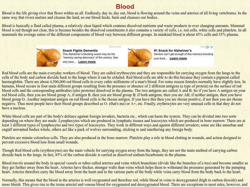 A very good description of the blood and circulatory systems of mammals and the important role that blood plays in the physiology of animals.