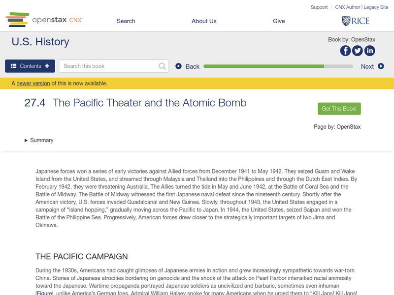 Open Stax: World War Ii 1941 1945: The Pacific Theater and the Atomic Bomb
