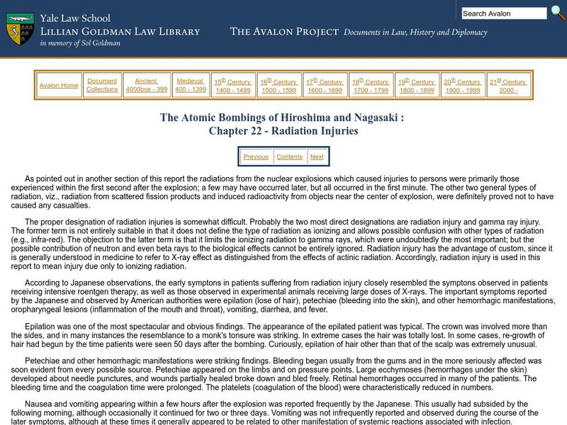 Site from Yale provides detailed information about the radiation sickness that swept through the bombed areas of Japan after WWII. Detailed and thorough analysis.
