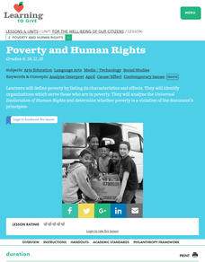 Students investigate the definitions of poverty and impoverishment. They design a poster that show the Articles of the Universal Declaration of Human Rights that are violated by poverty. They write an article for the school newspaper...