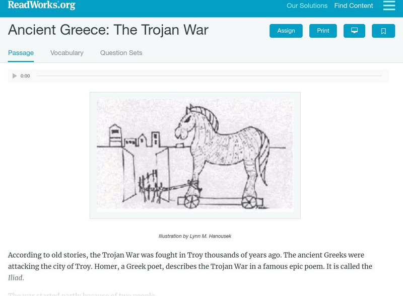 [Free Registration/Login Required] An informational text about how the Greeks fought an won the Trojan War. A question sheet is available to help students build skills in reading comprehension.