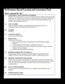 Where's the best seat in the house? Given a diagram of a movie theater, pupils determine the best seats based on the viewing angle. They use inscribed angles to justify their choices.