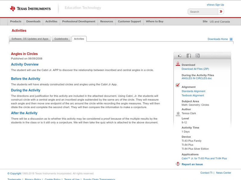 Texas Instruments: Central Versus Inscribed Angles in Circles