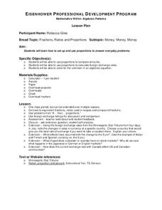 Students investigate the concept of using proportions to compare quantities while also practicing calculations for foreign exchange rates. They develop the skill of solving for unknown quantities of money while using an algebraic equation.