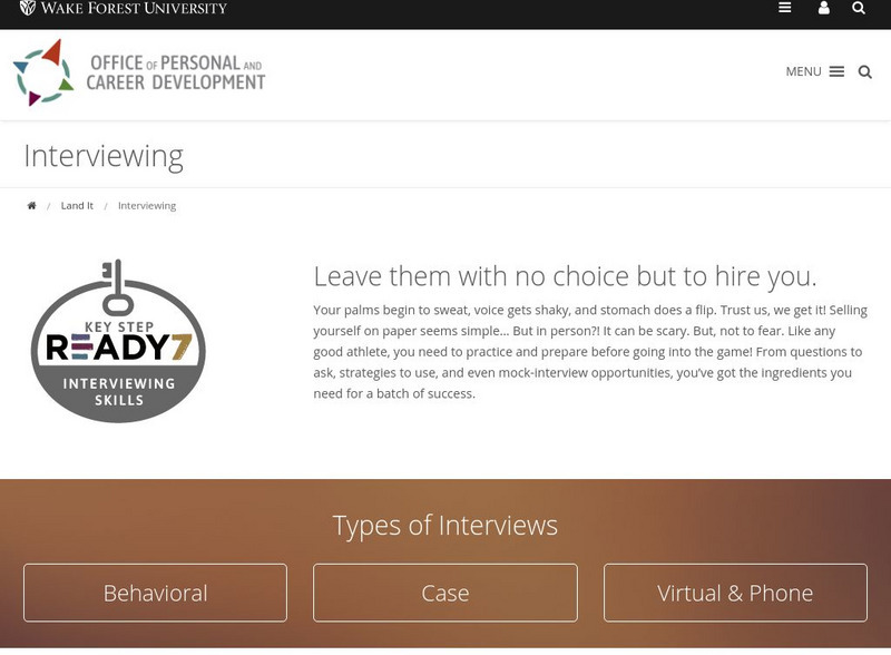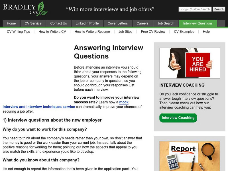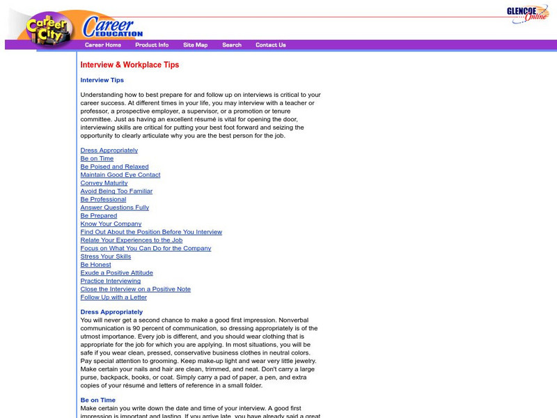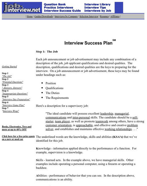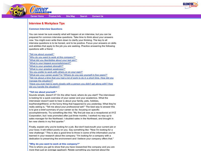 Comprehensive interview site. Includes 7 steps to job interview success including preparing for the interview. Sample job interview questions and mock job interviews as well as interview questions by job function. CSS.ELA-Literacy.CCRA.SL.6