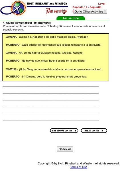 Holt, Rinehart and Winston: Ven Conmigo; Giving Advice About Job Interviews