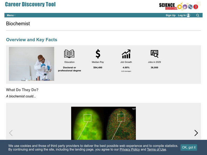 Science Buddies offers a career description of a biochemist. If you have an interest in both biology and chemistry, this might be a good fit for you. Read the "On the Job" section to find out all the different things a biochemist does....
