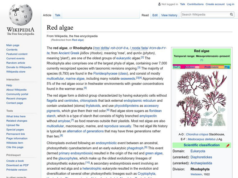 Wikipedia offers detailed information on red alga, including an image and a scientific classification chart.