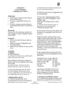Students explore ocean pollution. In this ecology lesson, students view a video entitled This Pretty Planet and identify common biodegradable products. Students participate in activities designed to simulate the negative effects of...