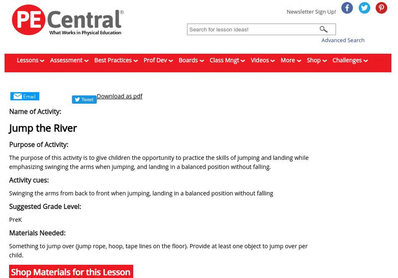 Young children practice jumping and landing while using proper arm movements to ensure safety and balance. At this website, find a description of the game, "Jump the River," including ideas for demonstrating it in class, ways of varying...