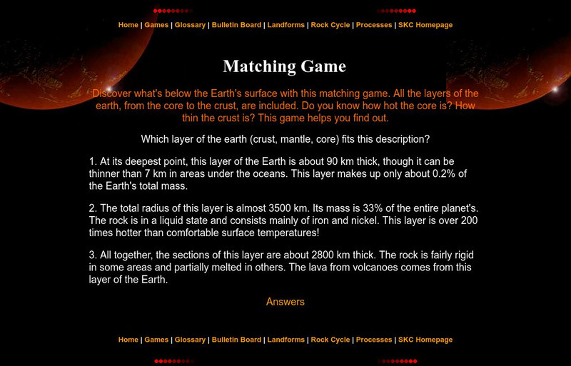 Matching game on the earths core and crust. Students test their knowledge and learn what is below the earth's surface.