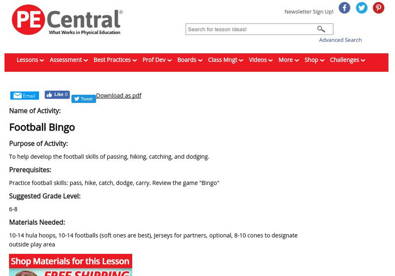 Pe Central: Pe Lesson Ideas: Football Bingo