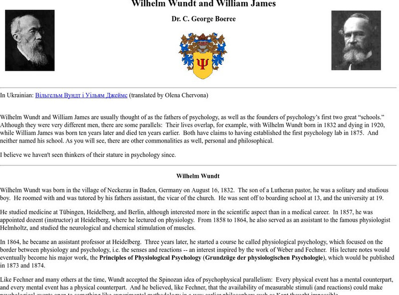 A complete site on William James. Contains an abundance of links for information on William James including links to biographies on his life, links to some of his works, reviews and criticisms, and much, much more!