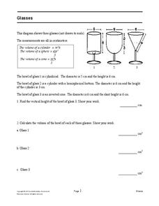 Clink, clink! Young mathematicians investigate drinking glasses composed of known solids (cones, cylinders, and hemispheres). Next, they determine the volumes of these glasses.