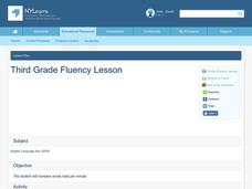 Elementary learners practice reading short passages to increase their fluency. They work in pairs to do repeated readings of Jane and Babe, recording their times. They switch roles and time one another in an effort to decrease the...