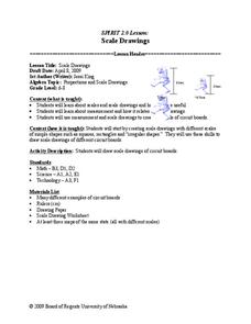 In this drawing plans to scale worksheet, students examine how to convert small scale drawings to real life plans. They work with perimeters and areas when given the scale ratio. They complete 7 multi-step questions. They enter the...