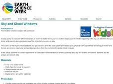 Young scholars monitor the weather, clouds, and sky. In this weather lesson, students create a sky and cloud window to focus their sky observations. They write observations in a notebook and include the date, time, cloud cover, types of...