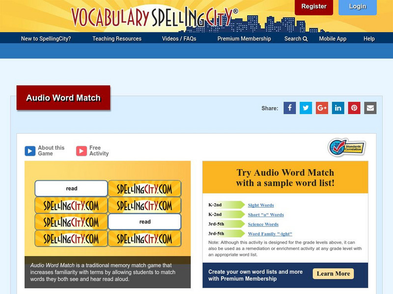 Vocabulary Spelling City: Audio Word Match