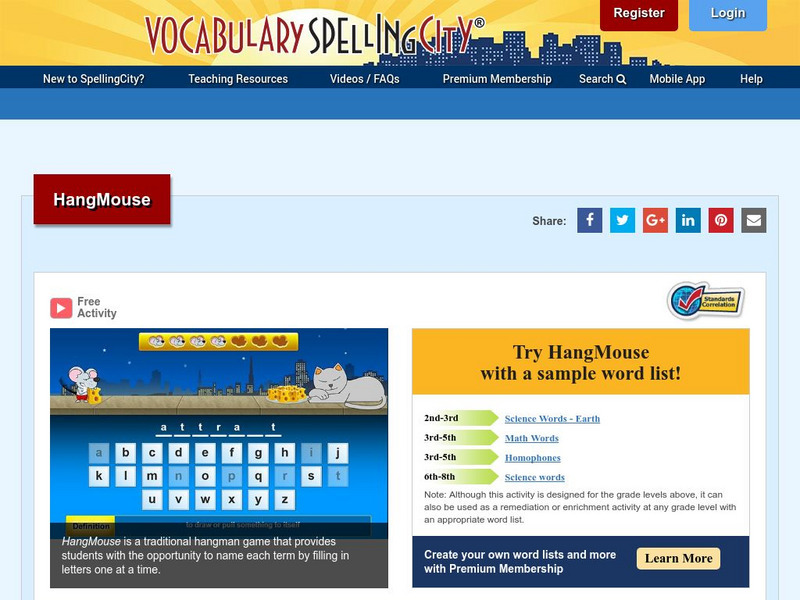 Vocabulary Spelling City: Hang Mouse