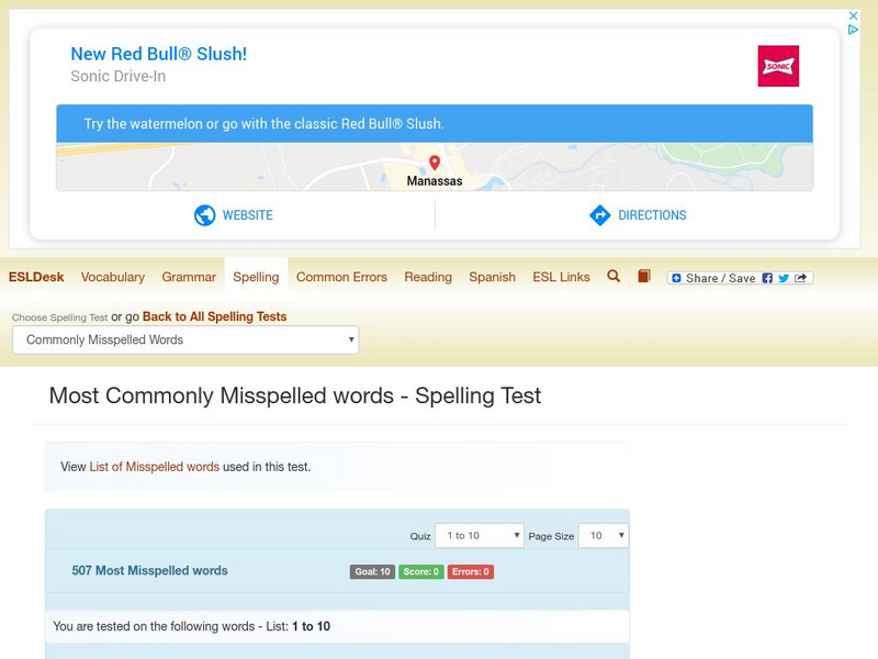 Esl Desk: Most Frequently Misspelled Words Spelling Quiz