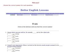 In this grammar instructional activity, learners choose the appropriate verb in parentheses in twenty-eight sentences that makes each grammatically correct.