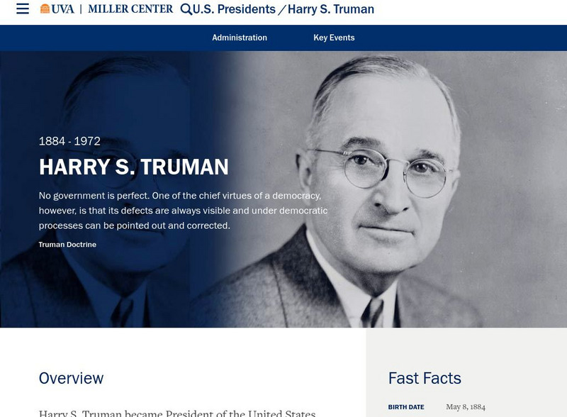Miller Center at Uva: u.s. Presidents: Harry S. Truman