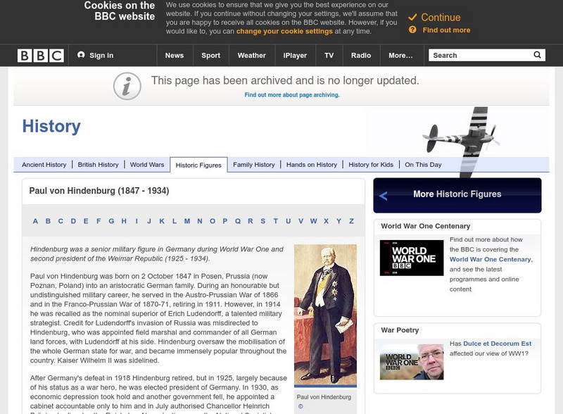 Bbc: History: Historic Figures: Paul Von Hindenburg