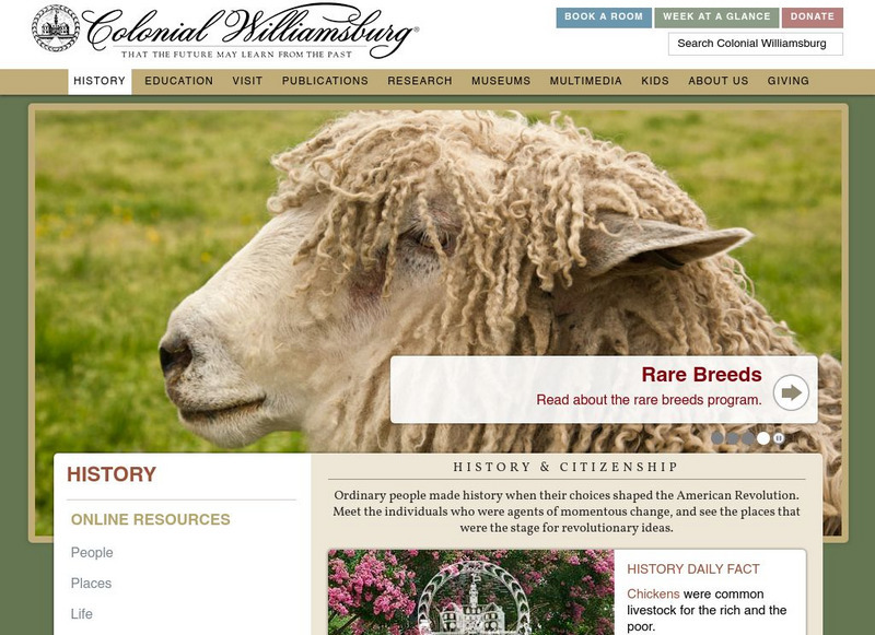 This site explores the politics involved in Colonial Williamsburg, leading up to the American Revolution. Content focuses on famous speeches, documents, and influential people.