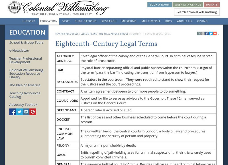 Colonial Williamsburg: Eighteenth Century Legal Terms