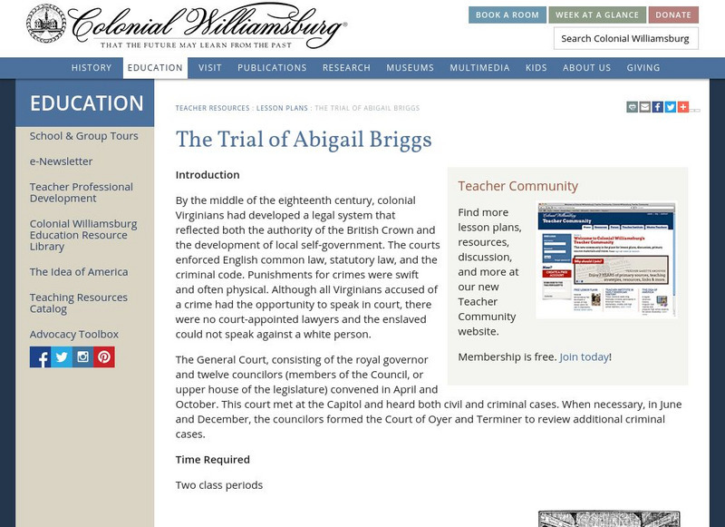 Colonial Williamsburg Foundation: The Trial of Abigail Briggs