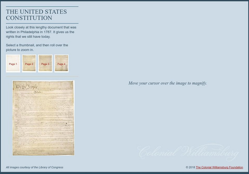 Take a close look at this document that was written in Philadelphia in 1787. It gives us the rights that we still have today. Select a thumbnail, and then roll over the picture to zoom in.