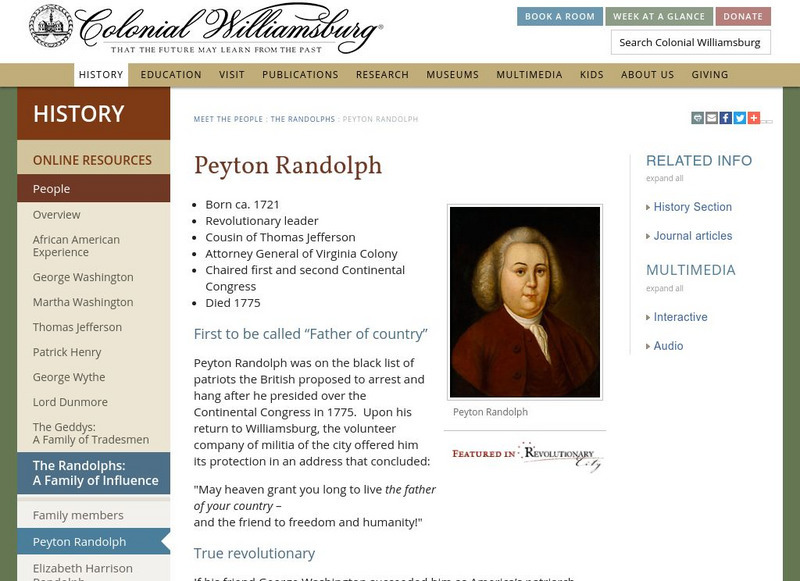 Biographical information on Peyton Randolph, the President of the First Continental Congress. Also includes links to a number of other important people and events of the time.