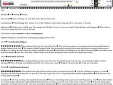 Fifth graders discuss what narrative writing represents. For this language arts lesson, 5th graders review the ten strategies for engaging reader. Students listen to and read good examples of each strategyand write engaging beginnings in...