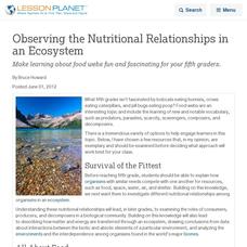 Students observe elements of a local ecosystem and gain an understanding of what elements make up an ecosystem. In this ecosystem lesson students create a class food web that shows the interactions among the elements of the...