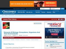 Learners investigate ecosystems near their school and across the world. They examine both living (biotic) and non-living (abiotic) elements of each. They recognize ecosystems from various continents around the globe. The use of computers...