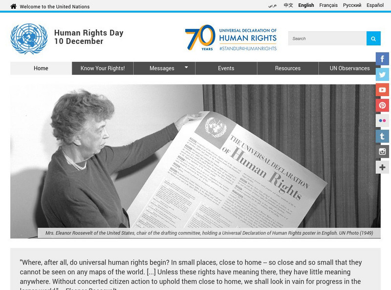 The portal into the site of the U.N. The "About the UN" button is the place to start gathering information about the organization, but there is plenty of other information, news, policy, etc. available here.
