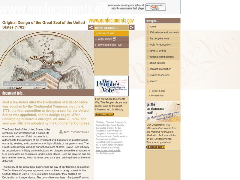 View and learn about the original design of the great seal, including the history of its creation and its current uses.
