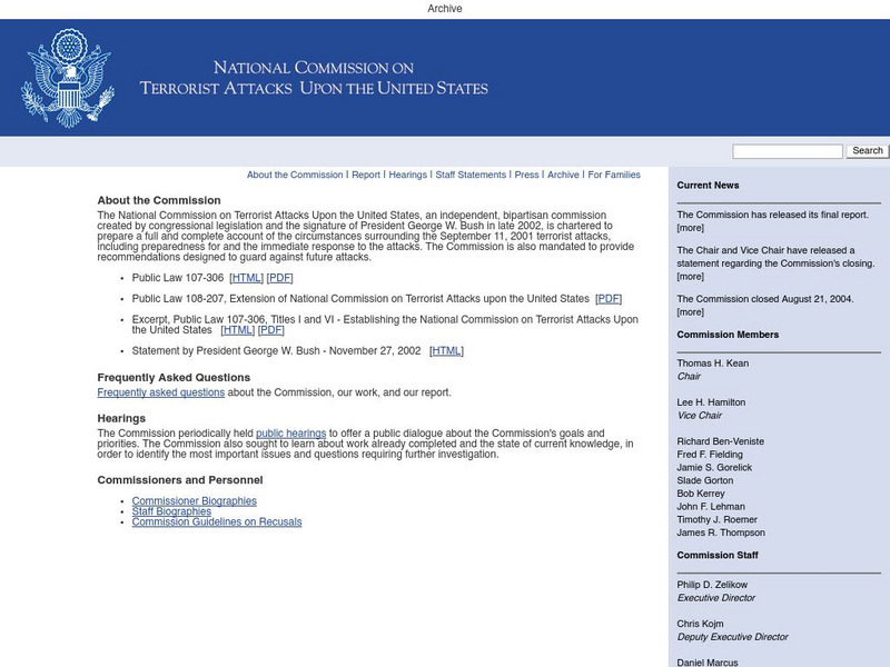 The official web site for the 9-11 Commission with copies of the final report, information on the hearings held by the commission and more.