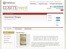 Students examine how the Jamestown settlement changed the first few years after it was founded. They take a virtual field trip of Jamestown, read primary source documents, discuss census information, and write a summary of changes in...