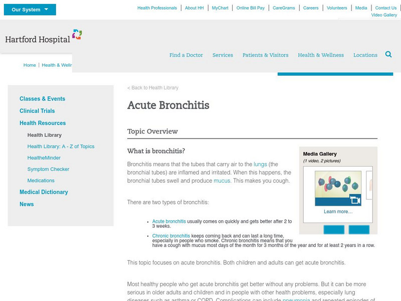 This site provides a detailed description of acute bronchitis and how it differs from chronic bronchitis. Explains causes, symptoms, diagnosis, and treatment.