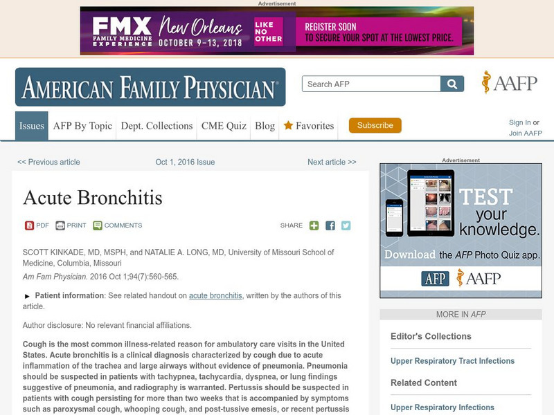 This is a comprehensive article from the American Family Physician journal about acute bronchitis and its treatments.