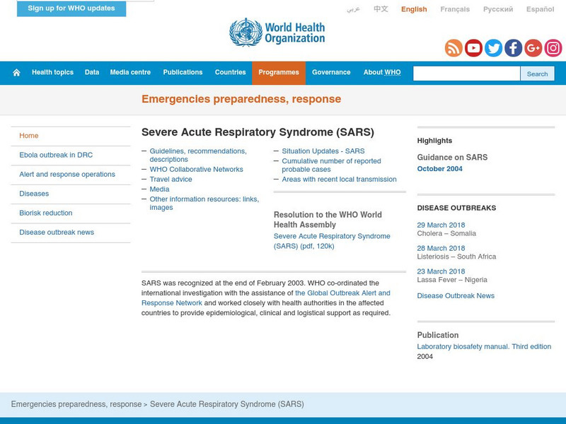 World Health Organization: Severe Acute Respiratory Syndrome (Sars)