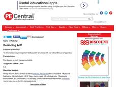 Students demonstrate management skills specific to balance. In this physical education instructional activity students participate in activities with and without apparatus to improve balance. Students work at 8 stations to practice...