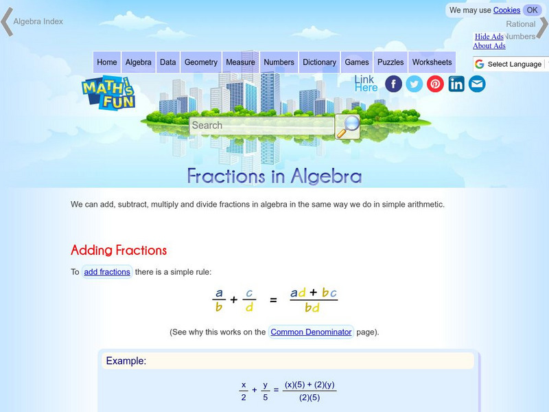 Students learn about fractions in algebra. Topics include adding, subtracting, multiplying, and dividing fractions. The resource consists of rules and examples related to operations with fractions.