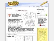 Warm up your problem solving skills to make the magic work in these magic squares by getting the correct numbers in the correct spot. You can check your solution at this one page website.