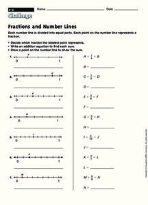 Extend your class's ability to represent unit fractions on a number line with this challenging worksheet. Given two number lines, one labeled with zero and 1/4, the other with zero and 5/3, learners must accurately locate the number one...