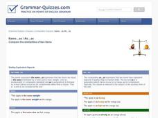 In this same...as and as...as worksheet, students complete sentences with same...as phrases and as...as phrases. Students complete 22 sentences.