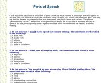 In this parts of speech instructional activity, students review adjective as they read a brief description and underline all of the adjectives in 15 sentences. In addition, students create 2 of their own sentences using adjectives.