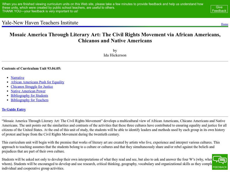 A lesson unit designed to outline the civil rights movement as seen through the eyes of African Americans, Chicanos, and Native Americans.